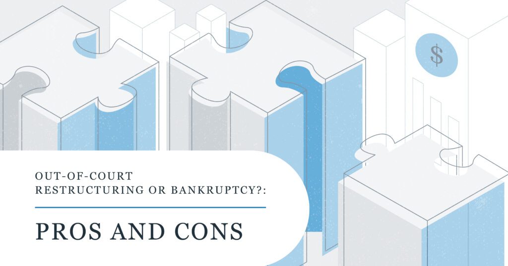 The main disadvantages of out-of-court restructuring are the benefits available through in-court Chapter 11 proceedings. With an out-of-court restructuring, companies cannot put a pause on creditors’ demands to pay pre-restructuring obligations and creditors may still proceed with lawsuits.