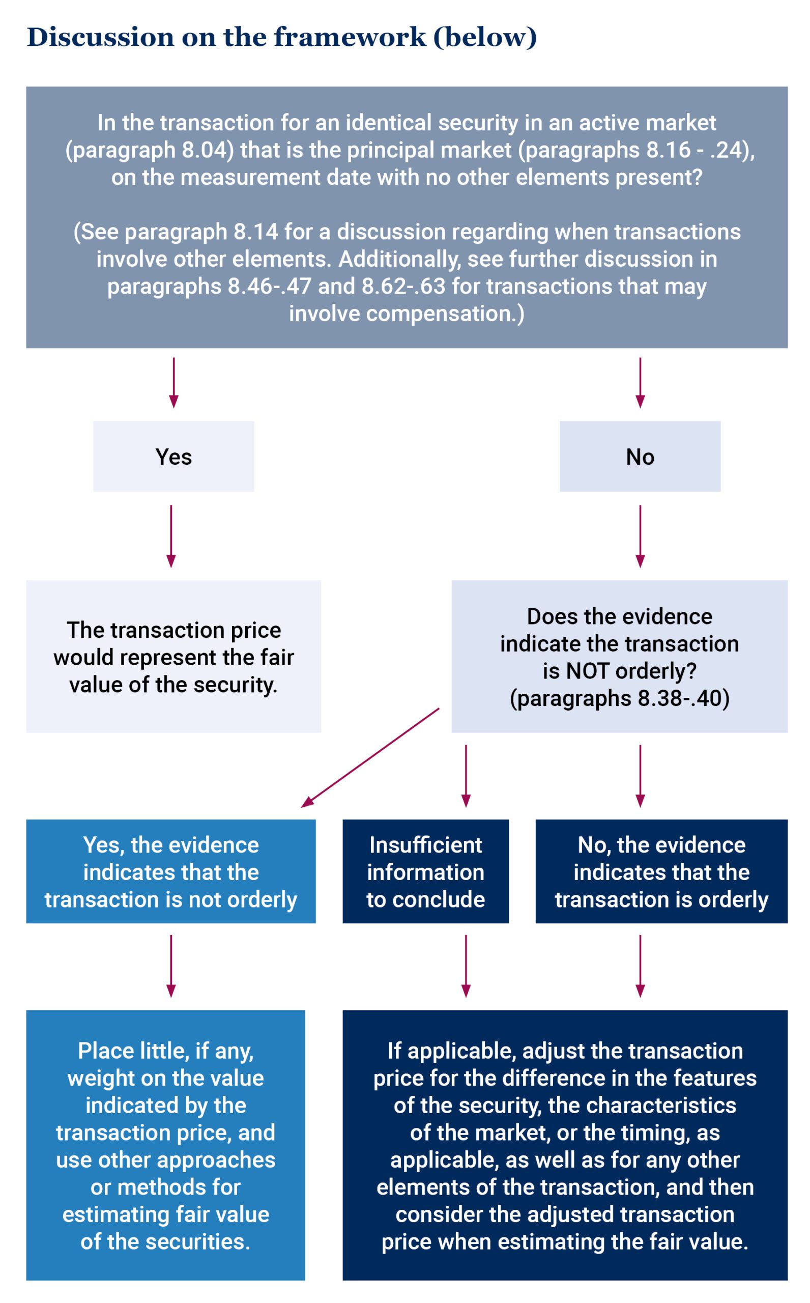 - “When evidence indicates a transaction is not orderly, practitioners should place little, if any, weight on the transaction price and rely more heavily on other valuation approaches.”